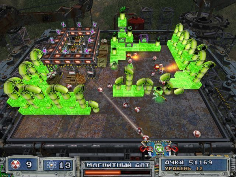 В целом, графика стала ярче и приятнее глазу, дизайн уровней усложнился. А значит игровой процесс стал интереснее! Не теряйте времени, вооружайтесь мышью и принесите в фантастический мир Ядерного шара 2 чистоту и порядок. Собирайте бонусы, избегайте страшных красных черепов и, главное, не забывайте собирать заряды , ведь 20 зарядов это дополнительная жизнь и лишний шанс пройти игру до конца. Игра наверняка понравится всем поклонникам арканоидов и подарит не один час увлекательного игрового процесса всем желающим. Игрок! К борьбе за мир без радиации будь готов!