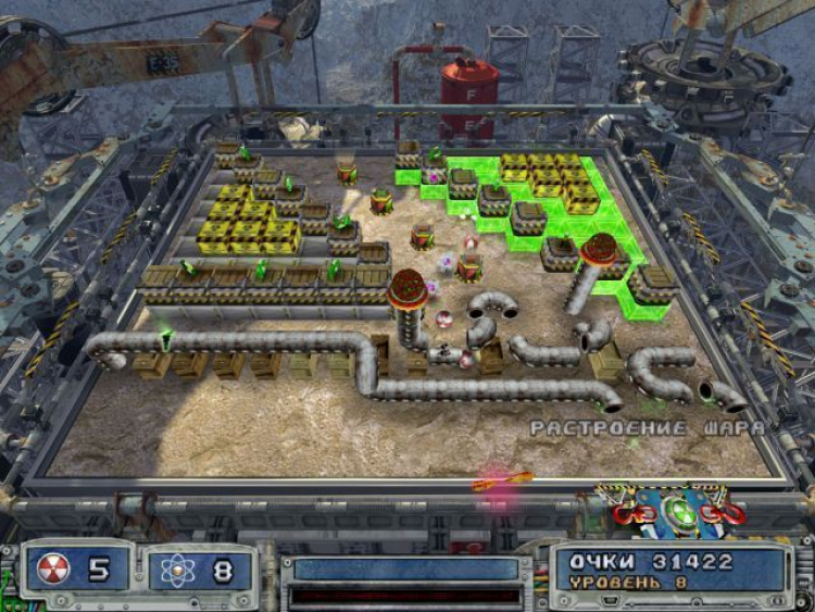 В Ядерном шаре 2 разработчики не только оставили все предыдущие удачные находки, вроде большого количества бонусов и головоломного дизайна уровней, но и добавили ряд новых элементов, которые делают игру еще интереснее и увлекательнее. Среди разнообразных ящиков с токсичными и радиоактивными отходами теперь можно увидеть всевозможные хитросплетения труб, от которых не так-то просто избавиться. Вредоносные бонусы стали опаснее. Теперь красные черепа не просто падают вниз они ведут себя так же, как и шар, отскакивают от препятствий, норовя при этом изменить свою траекторию самым невыгодным для игрока образом. Так что избежать столкновения с ними ой как непросто!