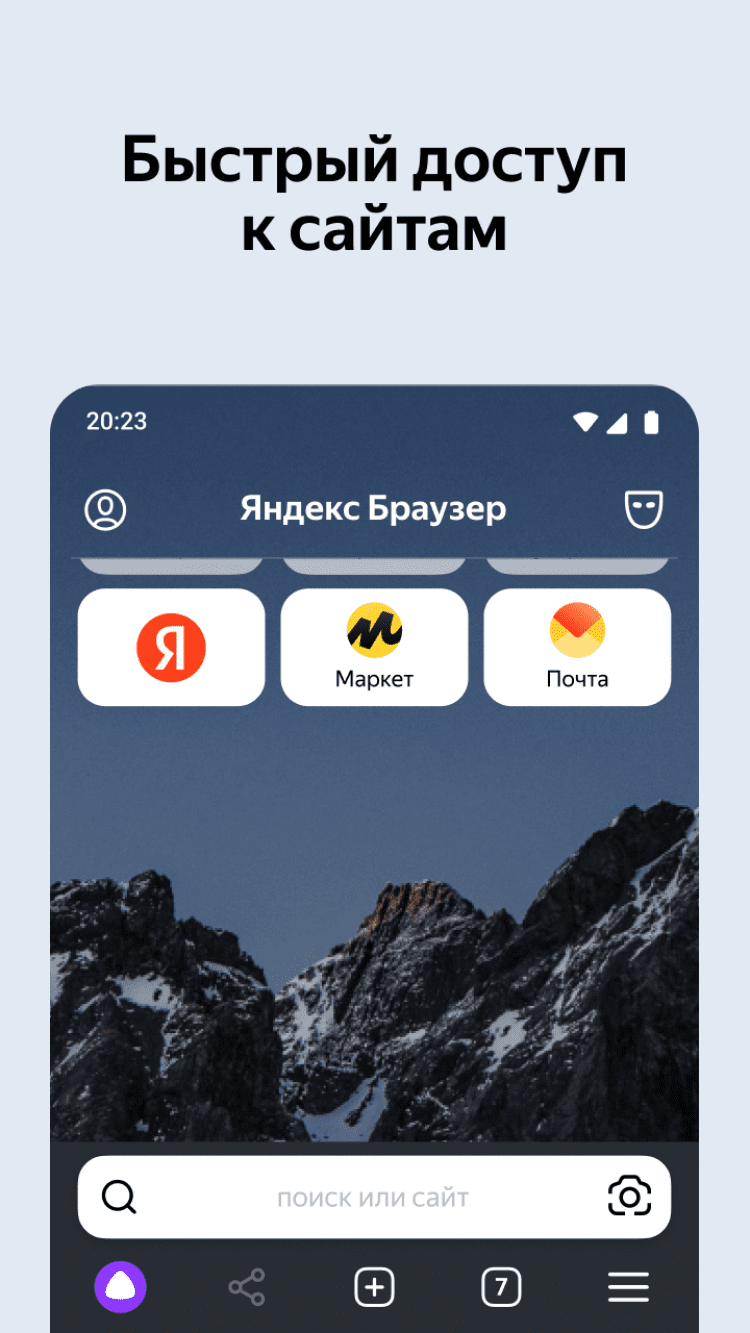 Яндекс Браузер — это опулярный браузер для мобильных устройств Android с улучшенными возможностями для быстрого поиска в Интернете и защиты пользовательских данных. Он обладает всеми функциями современных браузеров, такими как добавление понравившихся страниц в закладки, переключение между вкладками, сохранение паролей и многие другие.