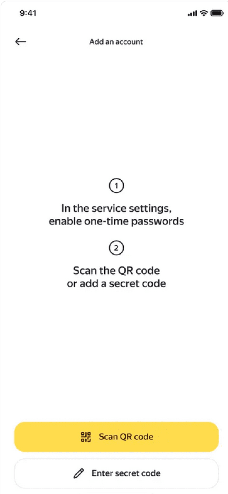 - Удобство и простота подключения. Просто добавьте информацию о сервисе в приложение вручную, или используя QR-код.