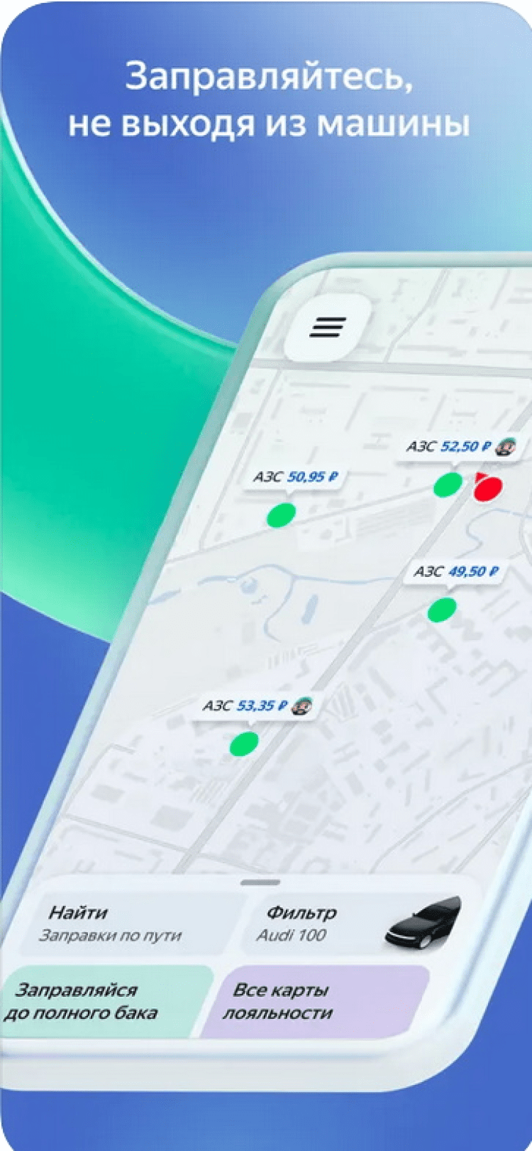 Скачайте приложение Яндекс.Заправки для iOS и оплачивайте топливо на заправочных станциях, не выходя из автомобиля.