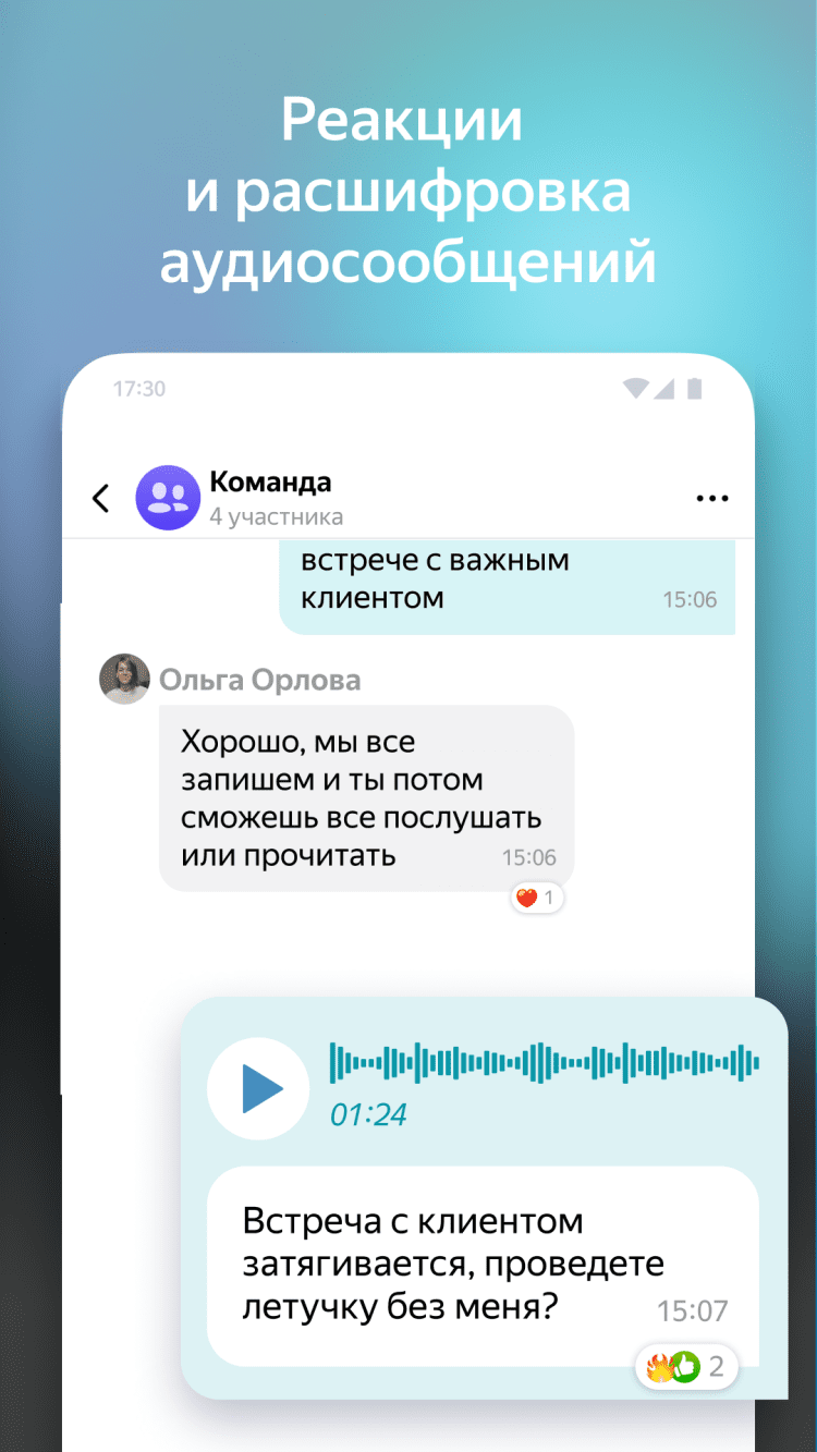- преобразование голосовых сообщений в текст;