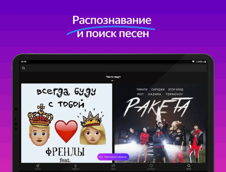 - отсутствие в базовой версии программы возможности прослушивать треки по запросу в поиске, сохранять их на устройство и прослушивать музыку в высоком качестве.
