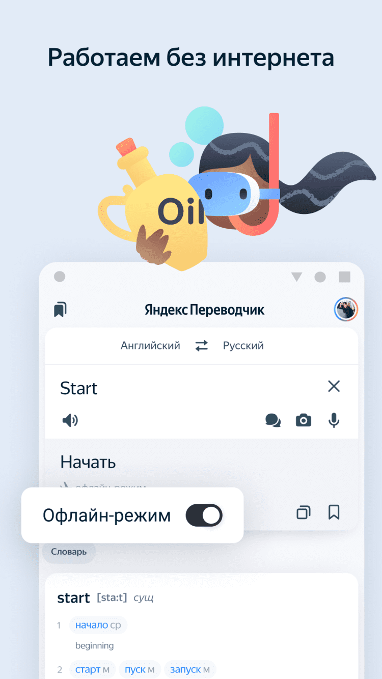 Приложение Яндекс.Переводчик также позволяет осуществлять перевод без доступа в интернет. Эта функция поддерживает английский, французский, турецкий, испанский или итальянский языки и позволяет переводить тексты на русский язык и обратно. Обратите внимание, что функцию оффлайн-перевода необходимо дополнительно активировать в настройках приложения.