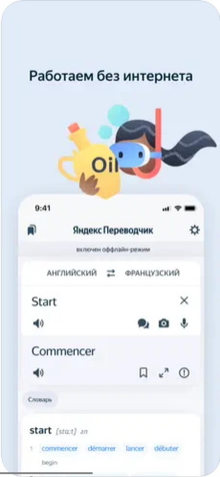 Приложение Яндекс.Переводчик также позволяет осуществлять перевод без доступа в интернет. Эта функция поддерживает английский, французский, турецкий, испанский или итальянский языки и позволяет переводить тексты на русский язык и обратно. Обратите внимание, что функцию оффлайн-перевода необходимо дополнительно активировать в настройках приложения.