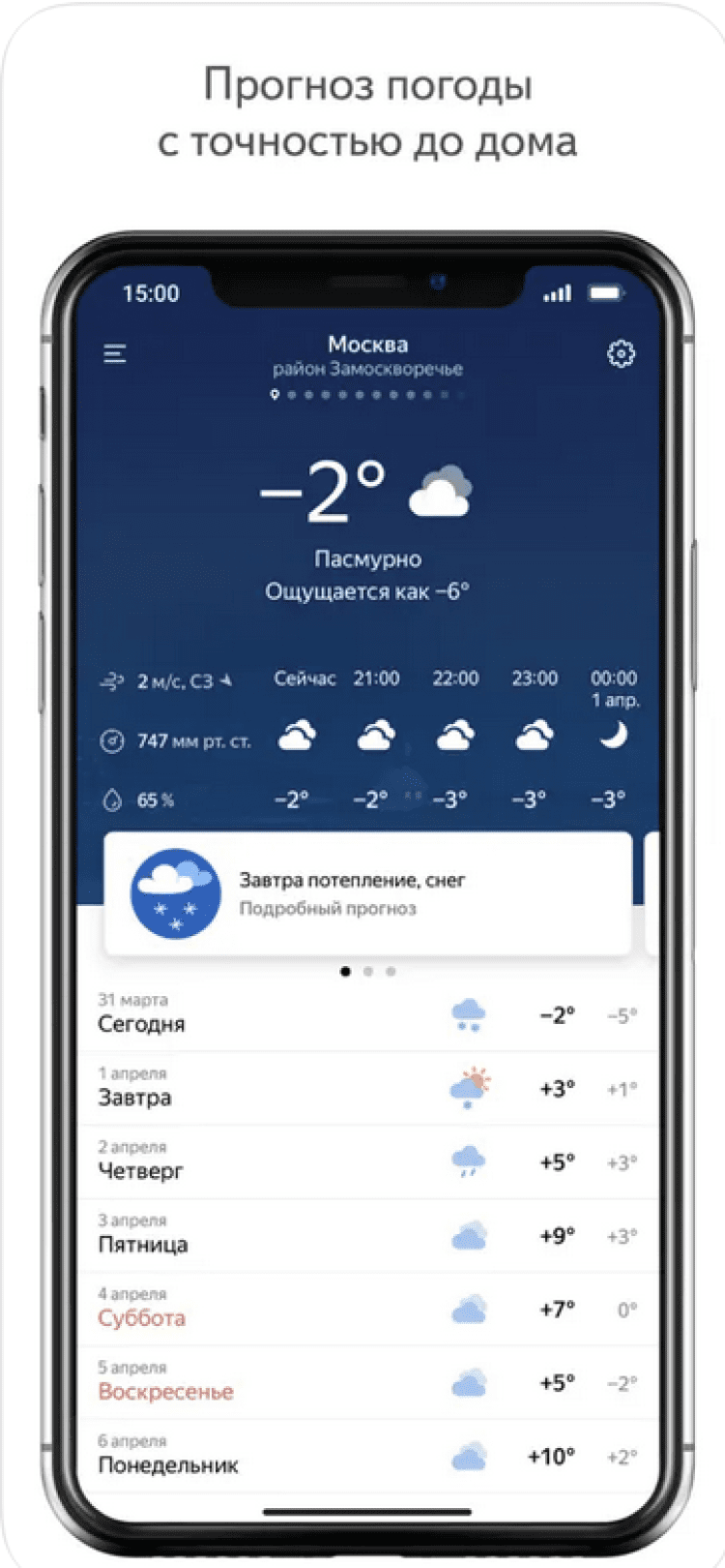 Скачайте приложение Яндекс.Погода — онлайн-прогноз и получайте максимально точные прогнозы погоды с точностью до дома.