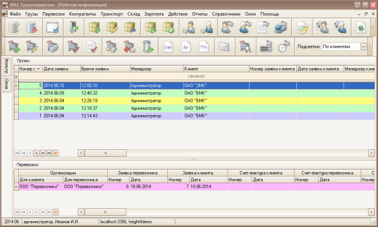 Это основа программного обеспечения ИАС Грузоперевозки. В модуле учета грузоперевозок реализованы следующие функции: