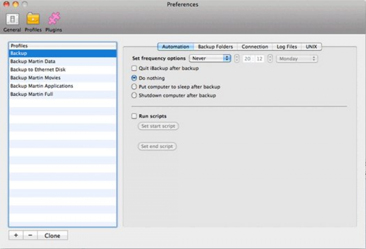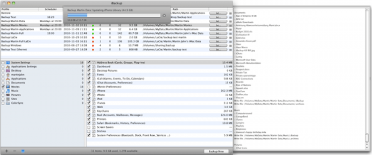 iBackup Простое в использовании приложение для создания/восстановления бэкапа. iBackup может по расписанию выполнять бэкап файлов, папок, приложений и настроек системы, адресной книги, почты и др. В настройках прижения можно выбрать что именно необходимо забэкапить, указать папку для бэкапов, составить расписание.