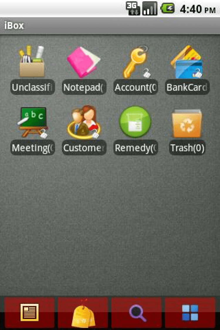 iBox Простая и удобная утилита для вашего мобильного устройства на базе Android, которая позволяет вам создавать простые текстовые записки. Также, программа имеет мощную систему шифрования записок и ограничения доступа к ним, так что вы можете не боясь хранить в них важную информацию, такую как номера кредитных карт, учетные записи, пароли, бизнес-планы, идеи продуктов и т.п.