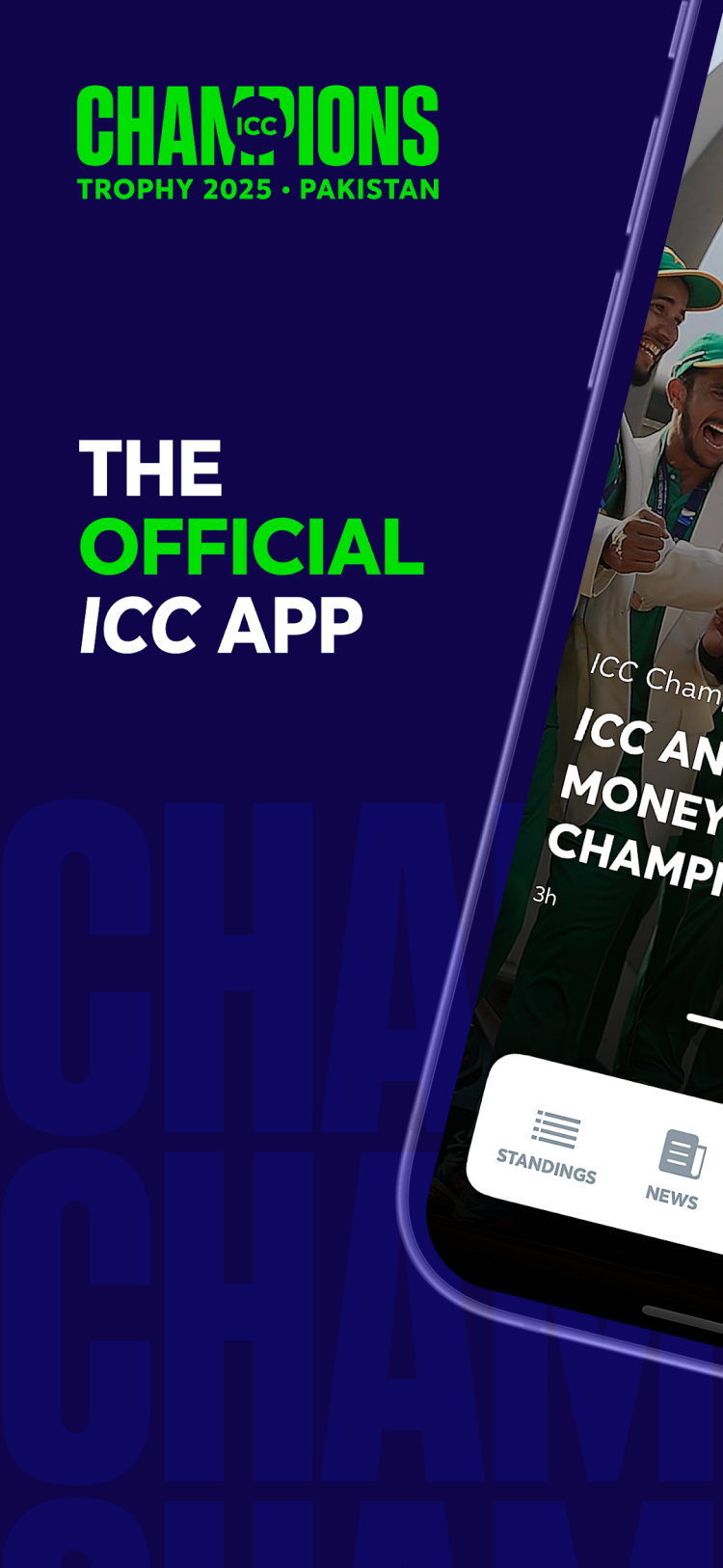 ICC Official — идеальное мобильное приложение для любителей крикета. Здесь вы можете смотреть прямые видеотрансляции международных матчей по крикету и узнавать результаты последних игр, расписание матчей и подробную статистику игроков.