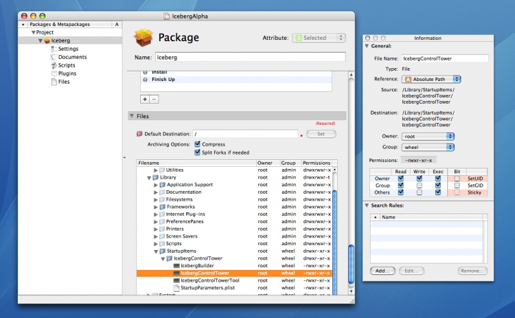 Iceberg Пакет инструментов, позволяющий создавать различные пакеты и приложения для Mac. С данной программой вы с легкостью сможете создать инсталлятор, используя понятный графический интерфейс.