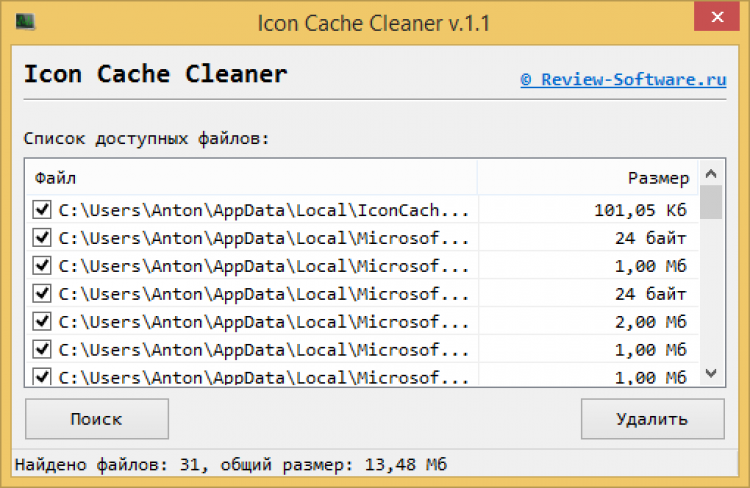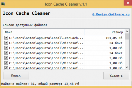 Решить проблему можно удалением действующего кэша и созданием нового. С помощью Icon Cache Cleaner можно быстро собрать все файлы кэша иконок и удалить их за один клик. Icon Cache Cleaner бесплатна и не требует установки.