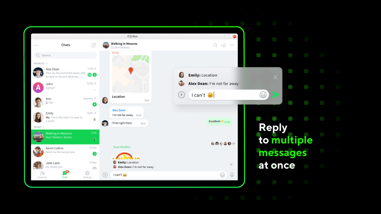 Самая популярная служба мгновенного обмена сообщениями сети Интернет. Пользователь службы работает с программой-клиентом (т. н. мессенджер), запущенной на устройстве, соединённом с сетью Интернет. Мессенджер подключается к серверу. Через сервер осуществляется поиск и связь с другими клиентами, а обмен служебными данными, сообщениями между пользователями может осуществляться как через сервер так и без его участия.