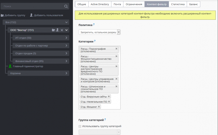 - Контент-фильтр (144 обновляемые категории URL).
