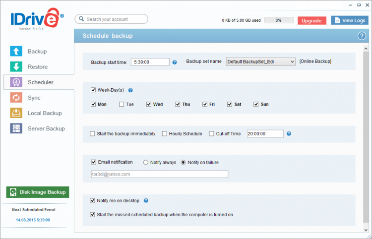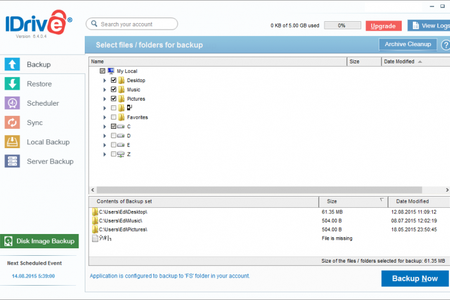 IDrive Online Backup - это программа для резервного копирования файлов в облако. Она делает бэкап файлов и загружает его в облачное хранилище. Пользователям доступно 5 Гб бесплатно. Все данные, загруженные в облако хранятся в зашифрованном виде, для обеспечения безопасности.