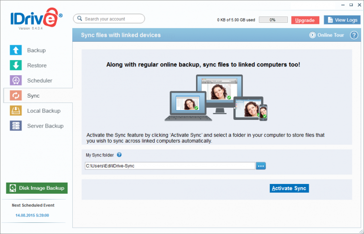 Помимо резервного копирования файлов в облако, IDrive Online Backup позволяет еще также бэкапить файлы на локальный или удаленный компьютер. Есть в программе и функция синхронизации файлов между несколькими устройствами. Синхронизация файлов происходит в реальном времени. С помощью встроенного планировщика можно настроить IDrive Online Backup на автоматическое резервное копирование по определенным дням в указанное время.