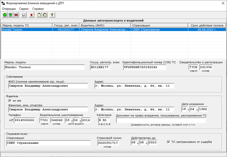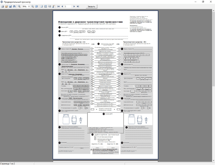 ИДТП - программа формирования бланков документа "Извещение о ДТП" с заполненной частью "А"