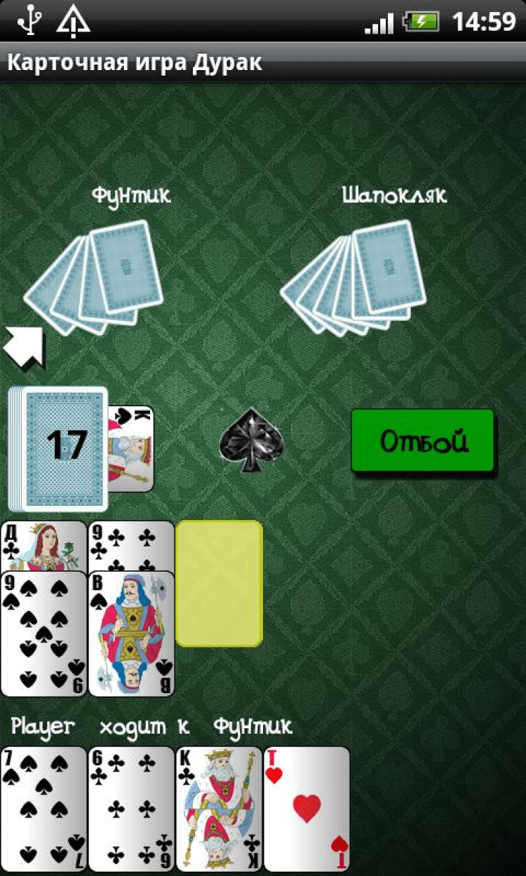 Игра Старый Дурак — это одна из самых распространенных карточных игр, и при этом чисто русского происхождения.Данная игра позволяет играть в подкидного или переводного дурака с 1-3 компьютерными игроками. Есть возможность играть по BlueTooth Можно выбрать режим для малого разрешения экрана.