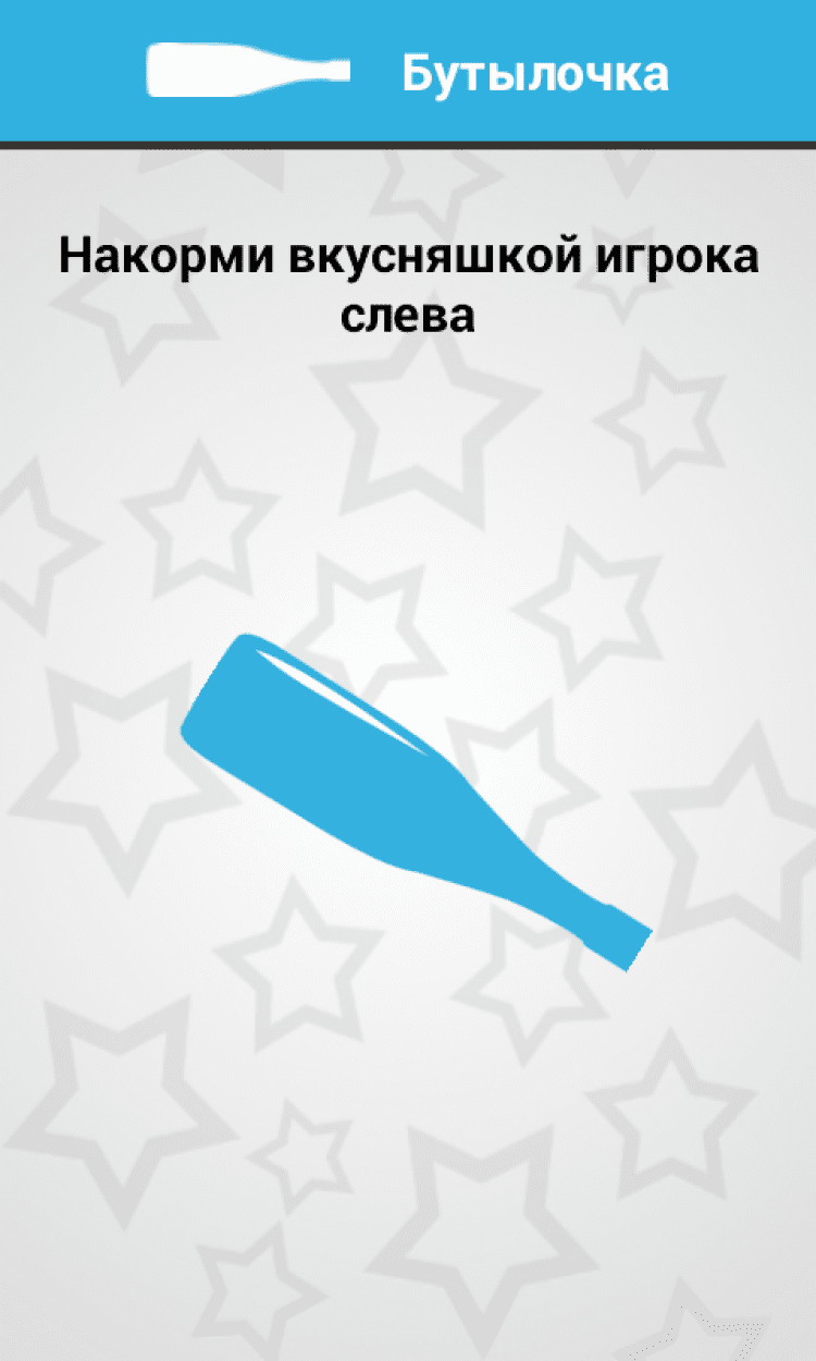 Бутылочка останавливается, а игрок, на которого она указала смеется или закрывает лицо руками от смущения. Потому что сейчас ему придется выполнить задание, появившееся на экране!