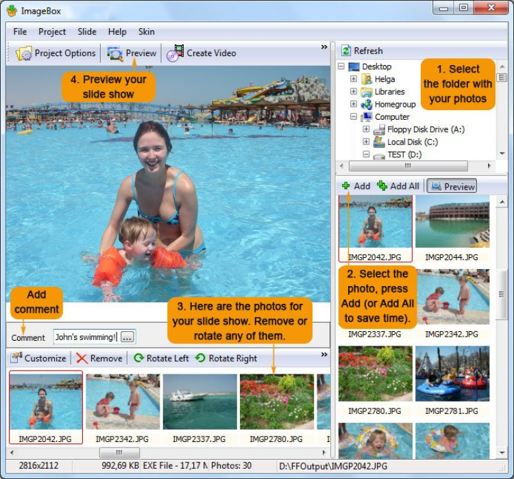 Image Box - это программа для создания слайд-шоу и презентаций в виде самостоятельного .ЕХЕ файла. Image Box не просто пакует файлы фотографий в .EXE файл и затем последовательно показывает их.
