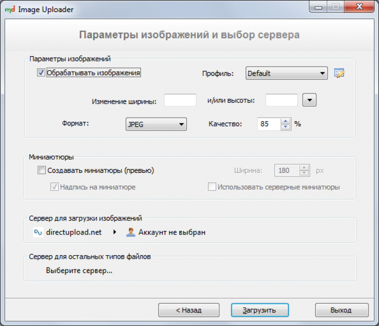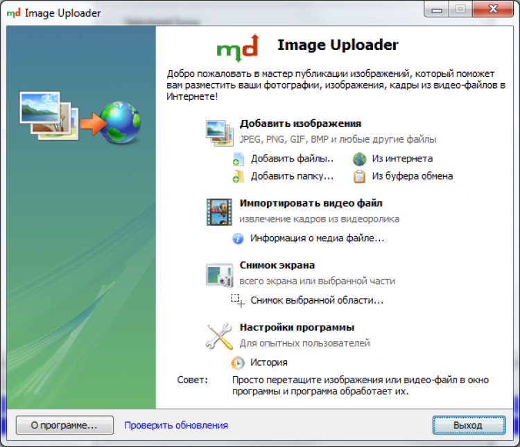 Image Uploader - бесплатная программа для Windows, предназначенная для загрузки изображений, фотографий, кадров из видео в интернет.