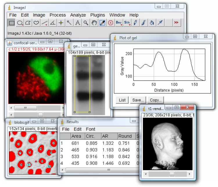 ImageJ - это продвинутая программа, предназначенная для анализа и обработки изображений. Она работает с 8-битными, 16-битными и 32-битными изображениями, поддерживает множество форматов, и позволяет выполнять разные операции над изображениями.