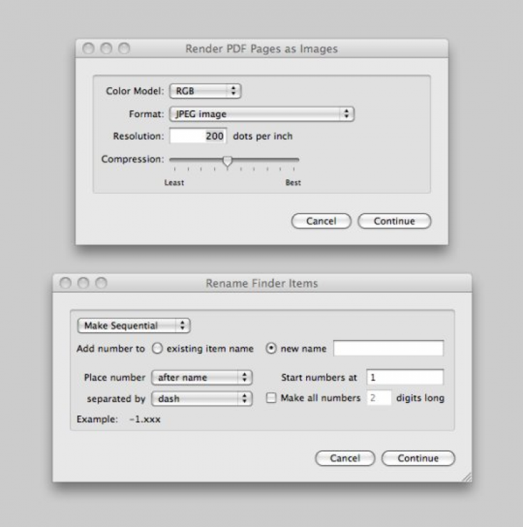 ImagesFromPDF for Mac Программа, позволяющая сохранят каждую страницу PDF документа как отдельное изображение. В настройках программы можно выбрать формат изображения (BMP, GIF, JPEG, JPEG 2000, PSD, PICT, OpenEXR, SGI, TGA, PNG и TIFF), цветовую модель, разрешение и метод сжатия.
