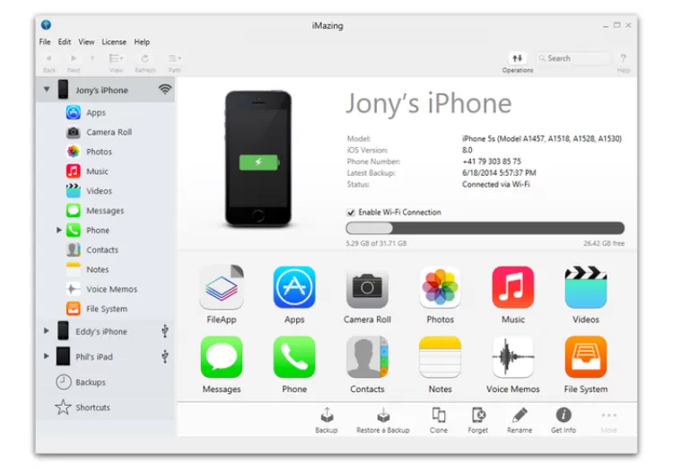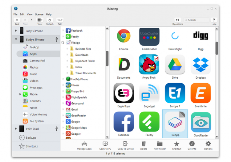 iMazing - это программа, с помощью которой, вы сможете подключить свой iPhone, iPod или iPad к компьютеру и пользоваться им как обычным внешним накопителем, передавая файлы с/на мобильное устройство удобным и привычным способом.