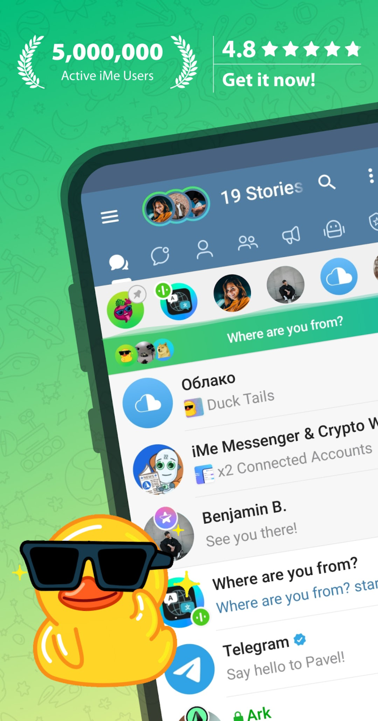 iMe — идеальное мобильное приложение для тех, кто ищет безопасный и многофункциональный мессенджер. Он работает на основе Telegram API , что обеспечивает надежный уровень защиты и интеграцию с популярным мессенджером. Читайте далее, чтобы узнать больше о приложении.