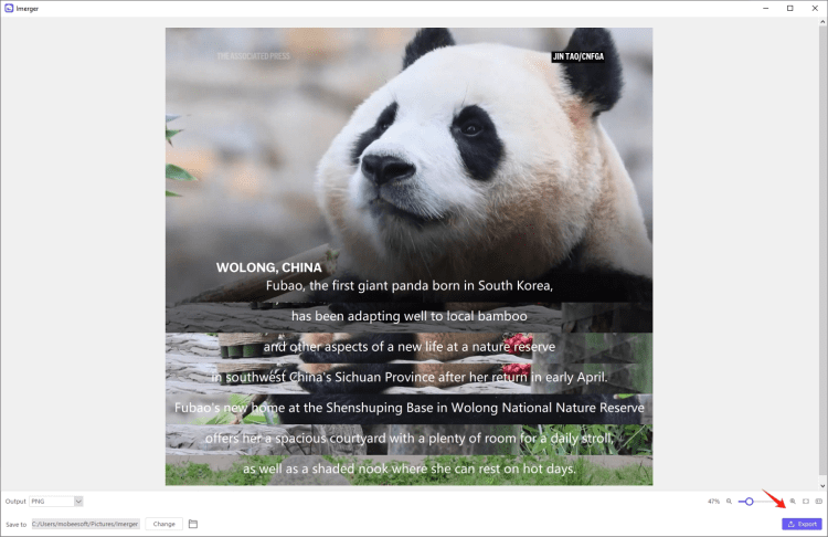 Imerger поддерживает различные форматы файлов для экспорта, включая JPEG, PNG и другие. Вы можете выбрать формат, который лучше всего соответствует вашим потребностям. Интерфейс Imerger интуитивно понятен и прост в использовании, что делает его доступным для пользователей любого уровня подготовки. Независимо от того, являетесь ли вы новичком или опытным профессионалом, наш инструмент прост в навигации и использовании.