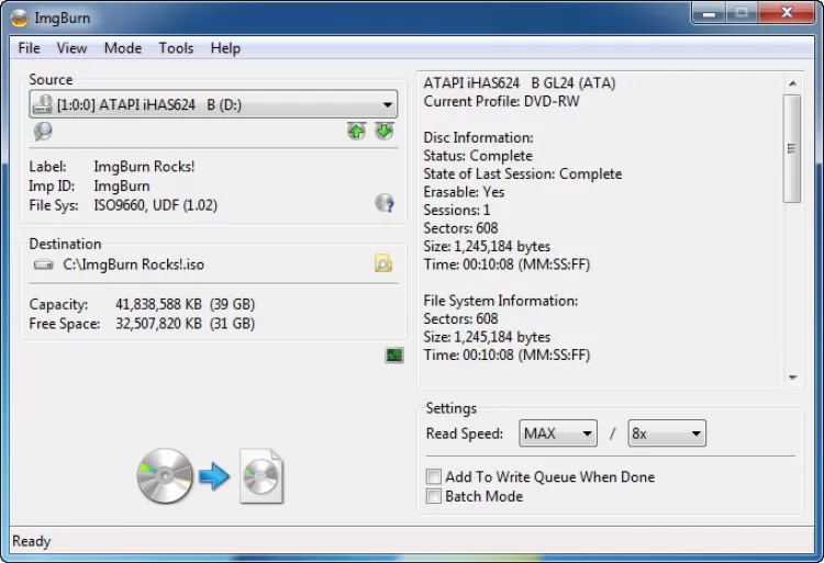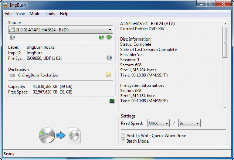 ImgBurn - одна из самых мощных и популярных программ для записи дисков и работы образами. С виду проста в использовании, однако кроет в себе полноценный набор инструментов для записи разных видов дисков, работы с образами и пр.