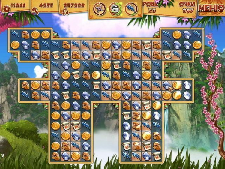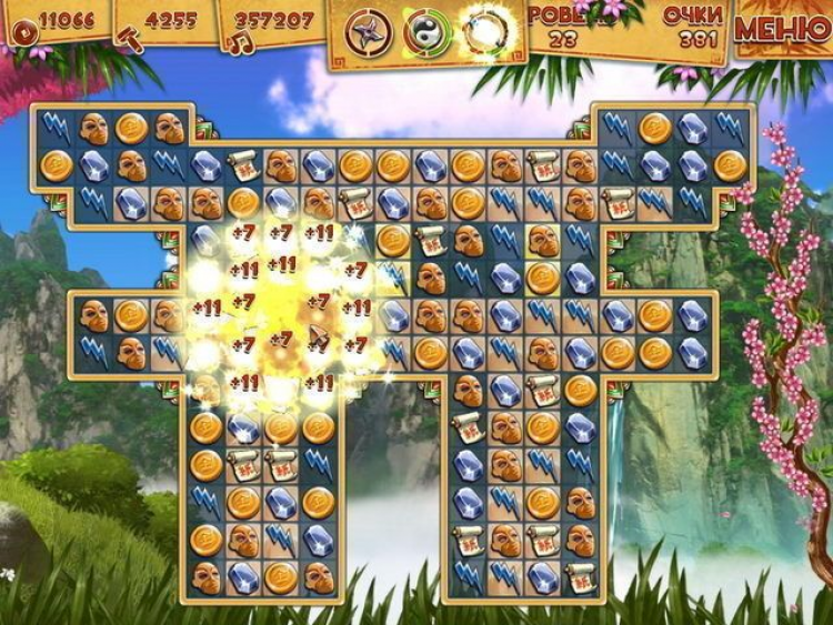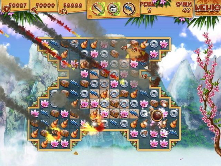 Три вида ресурсов, которые необходимо постоянно пополнять. Как это делать? Конечно, на игровом поле! Отправляйтесь туда, составляйте цепочки из одинаковых фигурок и зарабатывайте ресурсы и очки. Чтобы успешно пройти игру, разбейте все плитки под фишками до того момента, когда с сакуры упадет последний лист... Медлить нельзя! На каждом уровне у вас есть возможность значительно пополнить какой-либо один ресурс, собирая в линейки определенные фишки. Так, на первом уровне серебряные монеты, составленные в ряд из трех элементов, приносят неплохие деньги. А все остальные фишки только очки, которые тоже будут весьма кстати! Проявите внимательность, а чтобы дело шло быстрее, используйте бонусы, которые накапливаются пропорционально количеству собранных фишек того или иного типа.