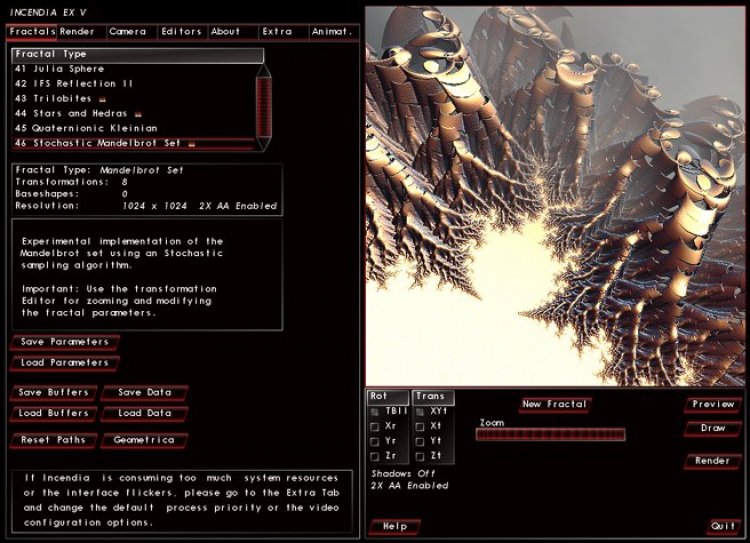 Incendia Next - это программа для 3D-моделирования, рендеринга и анимации, специализирующаяся на генерировании 3D фрактальных изображений.