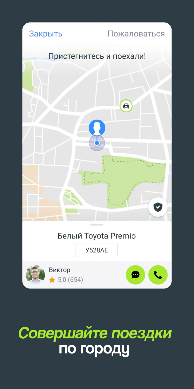 - возможность делиться информацией о водителе или треком поездки, с родными и близкими;