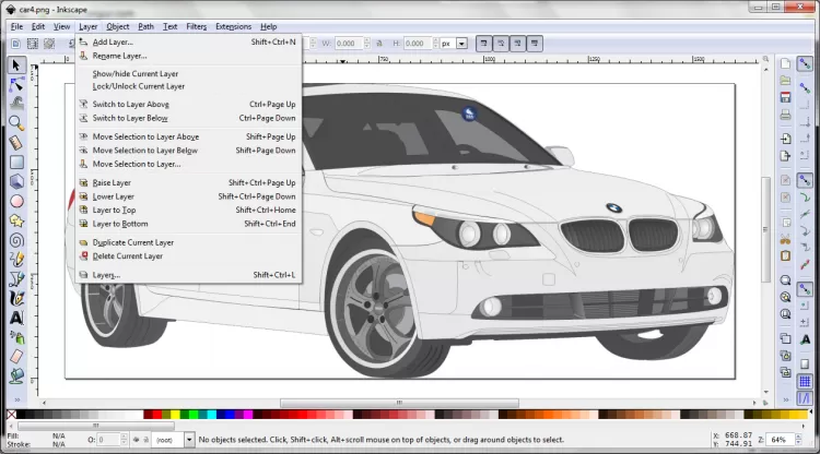 Вызывать и переключаться между инструментами и функциями Inkscape можно, используя комбинации клавиш. Редактор имеет интуитивно понятный, продуманный интерфейс. В нем есть контекстная параметров инструментов, статусная строка, которая отображает всю нужную информацию о выделенном объекте и полезные сочетания клавиш, и многое другое.