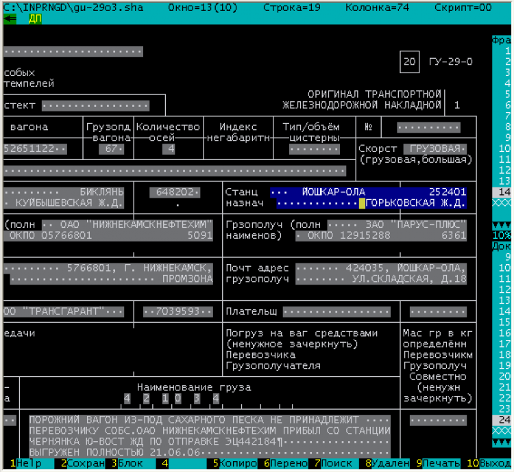 InPrint pro - это полезная программа. Вашему вниманию предлагается программа InPrint pro для заполнения железнодорожных накладных, создание и корректировка форм для печати на бланках. В программе в настоящее время присутствуют шаблоны для заполнения следующих форм накладных: РЖД - ГУ-27, ГУ-27б, ГУ-27в, ГУ-27е, ГУ-27сп, ГУ-28, ГУ-29а, ГУ-29к, ГУ-29-О, ГУ-31, ГУ-32, СМГС/SMGS, SNTL и др. (ГУ-12) Украина - ГУ-29-Б, ГУ-29-0, ГУ-29-К Беларусь - ГУ-29-О, других железнодорожных документов. Поставляемые шаблоны настроены для печати на матричных принтерах Epson. Поскольку принтер, с которым будет работать программа, может иметь отличия физические и программные, в программе реализована удобная подстройка впечатывания под другие модели принтеров. Кроме функции точной печати, InPrint pro предоставляет другие удобства для пользователя.