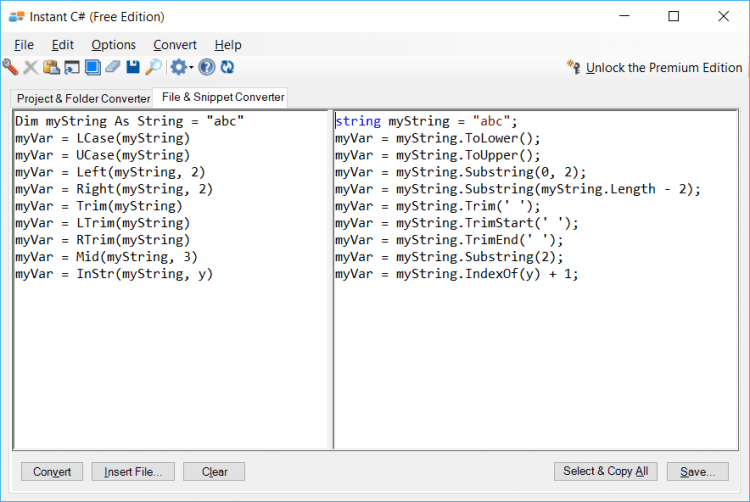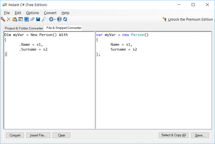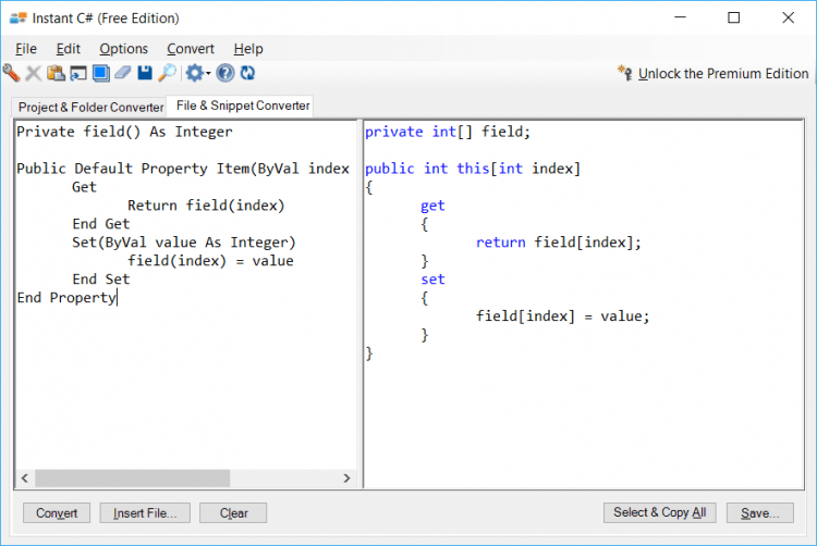 Instant C# Free Edition — это инструмент для конвертирования VB.NET проектов или фрагментов кода в C#. Он будет полезен при переходе на другой язык программирования или при работе сразу с двумя. Он сэкономит массу времени в обоих случаях.