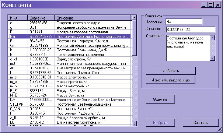 - пользоваться набором физических констант и единиц измерения или создавать их самостоятельно;