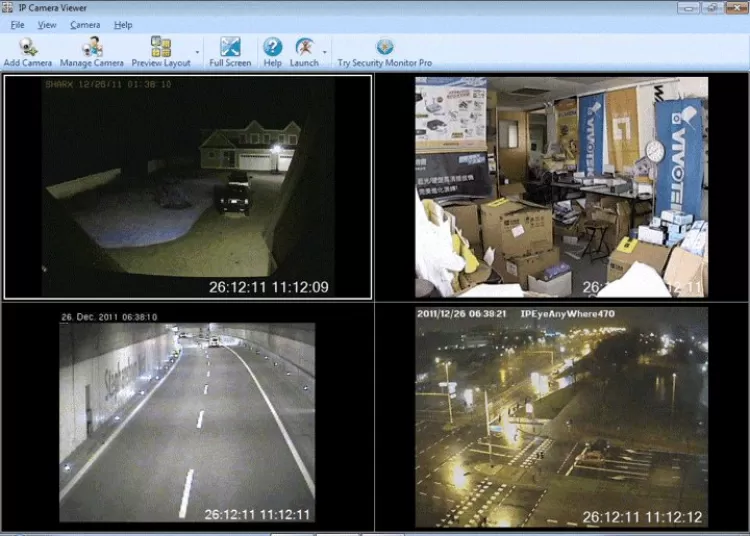 IP Camera Viewer может принимать видео сигнал одновременно с нескольких разных камер, позволяя следить за разными помещениями, или за одним большим с разных углов. Программа поддерживает огромное количество моделей как IP-камер, так и простых веб-камер, подключаемых через USB-порт. Можно одновременно управлять 4мя камерами. Видео с каждой камеры можно выводить на отдельные мониторы.
