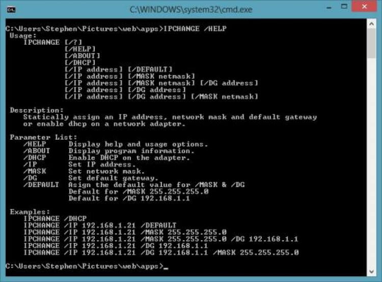 - Запустите IPChange из командной строки.