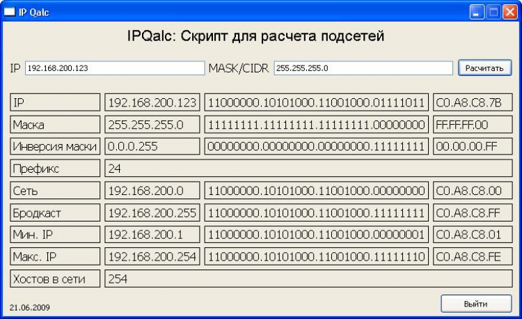 ipQalc - это простой в использовании калькулятор IP адресов подсети, который позволяет рассчитать параметры конфигурирования вашей подсети всего за пару кликов мышью.