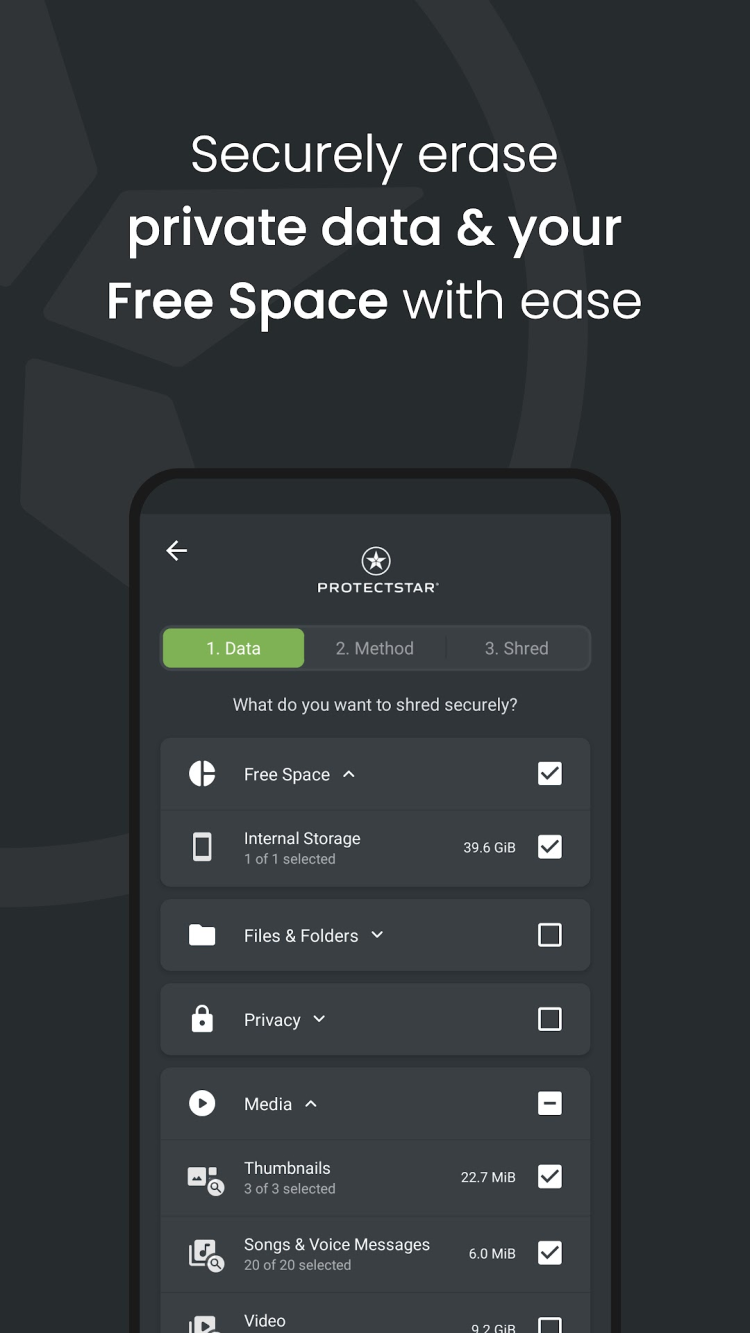 Несмотря на свою функциональность, приложение iShredder очень просто в использовании. Просто выберите данные, которые вам нужно стереть, и выберите один из нескольких стандартов безопасности, после чего запустите процесс. Если у вас нет конкретных файлов на примете, вы можете использовать функцию Free Space для стирания APK, кэша, миниатюр и других ненужных файлов.