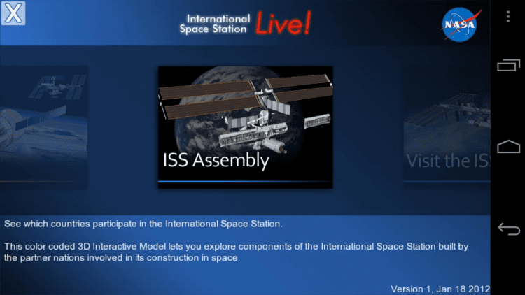 ISSLive Эта программа позволит вам просматривать трансляции с МКС в режиме реального времени, а так же ознакомиться с трехмерной моделью центра управления и самой станции, прямо на вашем мобильном устройстве. Эта программа включает в себя информацию о бортовых системах космической станции, задачах, членах экипажа, деталях экспериментов, принципах работы МКС, а так же ряд образовательных уроков.