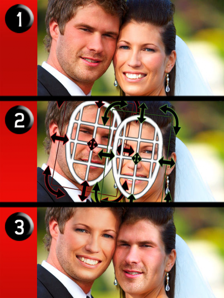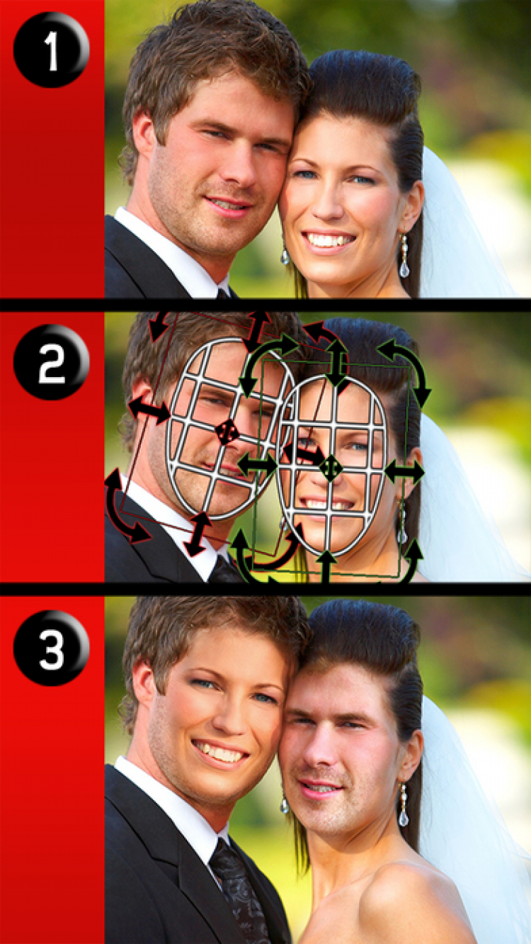 iSwap Faces Приложение, которое позволит вам легко поменять местами лица на фотографиях. Выберите существующий снимок из галереи или сделайте новый через данное приложение, выберите лица, которые хотите поменять местами, а программа сделает остальное. Полученные снимки вы можете отправить напрямую в Twitter или Twitpic. Платная версия обладает возможностью менять местами лица с двух разных фотографий.