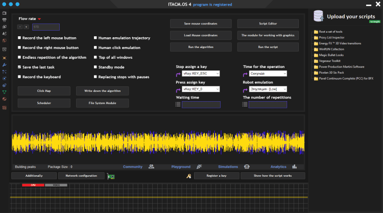 Удобный функционал записи алгоритмов и их последующие воспроизведение. Достаточно установить необходимые галочки.