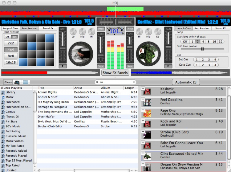 itDJ Бесплатное приложение для диджеинга, работающе с медиатекой iTunes, и позволяющее делать свои миксы и накладывать различные эффекты.