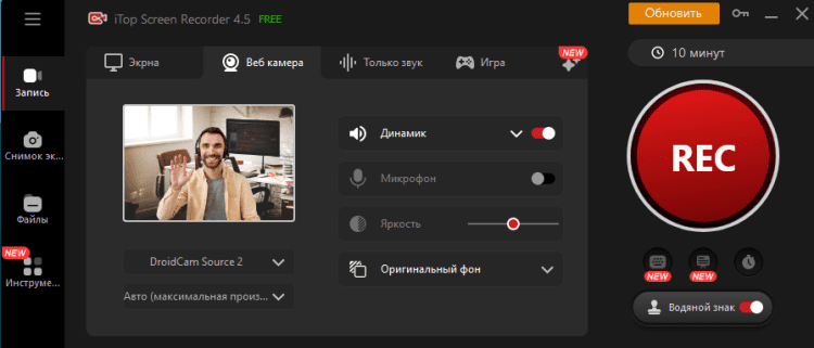 Легко записывайте видео с веб-камеры, например обучающие видеоролики, лекции и презентации, с помощью iTop Screen Recorder. Режим записи веб-камеры позволяет создавать HD-видео с веб-камеры в полноэкранном режиме или в режиме «картинка в картинке». Между тем, вы можете размыть, удалить или изменить фон видео при записи с помощью веб-камеры.