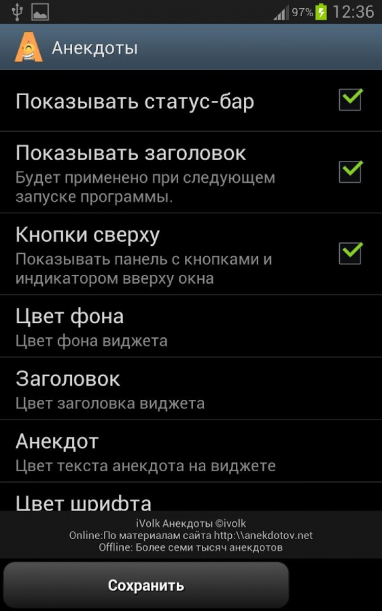 - подгрузка баз онлайн из интернета (суммарно более 40тыс.анекдотов);