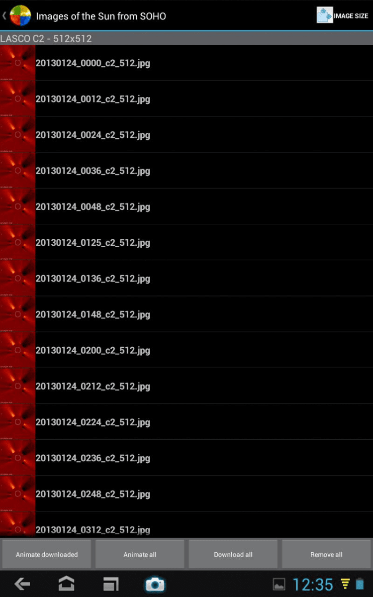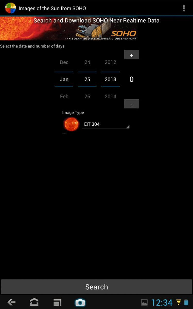 Изображения Солнца с SOHO Эта программа позволит вам выполнять поиск изображений со спутника NASA/ESA - SOHO и загружать их на свое мобильное устройство. Программа Images of the Sun from SOHO включает в себя весь архив изображений, начиная с 1996 года, заканчивая новейшими снимками. Вы сможете загружать изображения с 10 датчиков, выбрав размер изображения: 512x512 или 1024x1024.