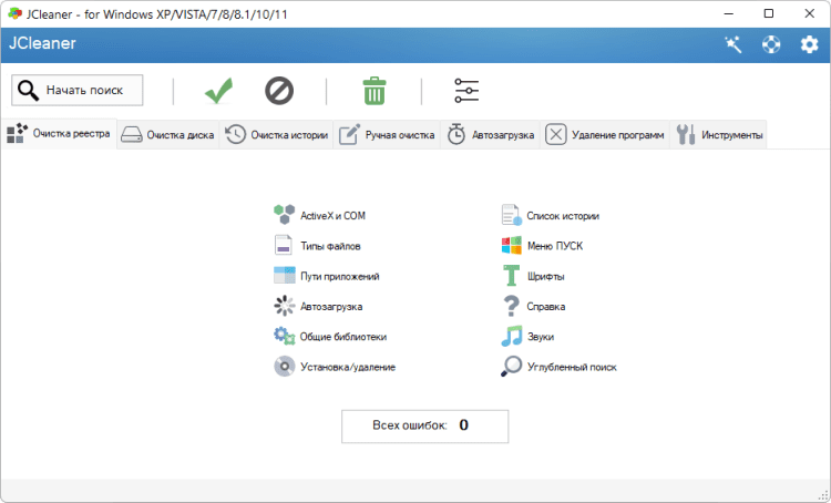 JCleaner — это мощная, но безопасная программа для очистки реестра, мусорных файлов, списков истории, а также владеющая рядом дополнительных возможностей.